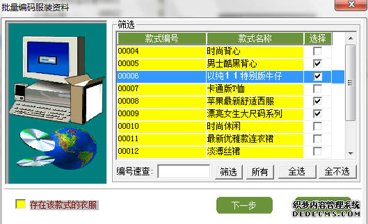 2、批量编码:用于对有相同属性的商品进行一次编码。