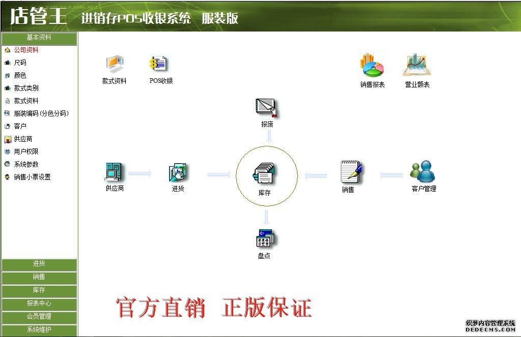 软件由基本资料、进货、库存、销售、报表中心、会员管理、系统维护等几大主模块构成。支持硬件连接。