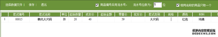 4、查看所导入的数据有没有需要修改的,然后点“保存”-》“退出”,回到款式资料点刷新。