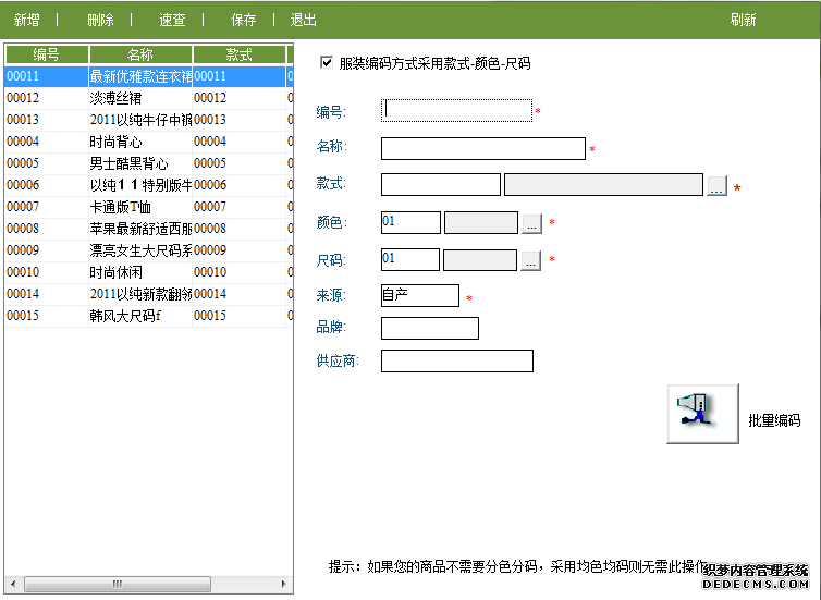 2、批量编码:用于对有相同属性的商品进行一次编码。